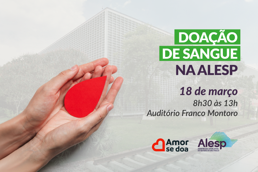 No dia 18 de março, a Assembleia Legislativa do Estado de São Paulo será palco de uma ação de doação de sangue, com o lema "Amor se Doa!", reforçando a importância da solidariedade e do cuidado com a vida.